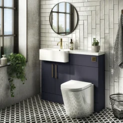 Arezzo 1000 Matt Blue Semi-Recessed Round Combination Vanity Unit (Matt Black Flush & Handles)