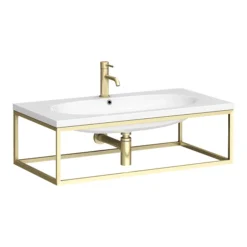 Arezzo 900 Wall Hung Basin With Brushed Brass Towel Rail Frame