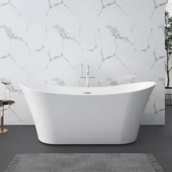 Mileto 1700 X 800 Curved Back To Wall Modern Bath With Chrome Waste