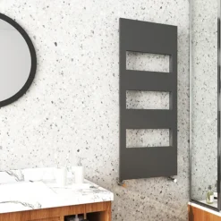 Create an instant focal point in your bathroom with the minimalist styling of the anthracite Arezzo designer radiator. Features a unique bold design which provides plenty of space for all your towels. Manufactured from durable steel with a quality eye-catching Anthracite finish, this stylish designer radiator provides superb heat output which will gently warm towels and your bathroom.