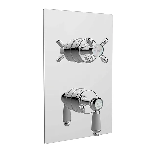The Renaissance shower valve range from Bristan features a stylish traditional crosshead and lever design and a square faceplate. This Renaissance Thermostatic Recessed Dual Control Shower Valve is suitable for all plumbing systems, requiring an operating pressure between 0.2 bar and 5.0 bar and comes with dual controls that regulate the temperature and flow separately.