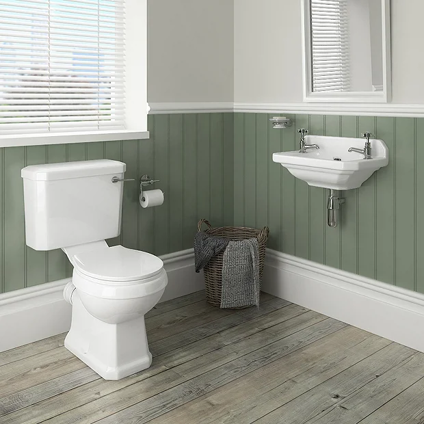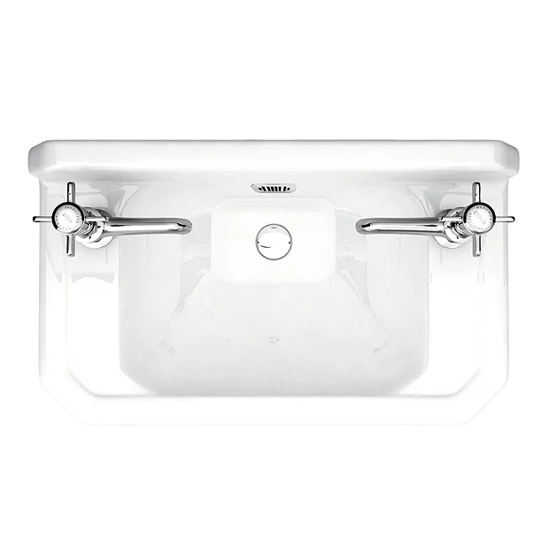 A high-quality traditional 2 tap hole wall hung cloakroom basin with overflow, ideal for creating a period look in your bathroom or Cloakroom. Manufactured using high-grade vitreous china ensuring a quality finish and long lasting durability. Bring a touch of elegance and style into your home. Comes with a 5 year guarantee against faulty workmanship or materials.