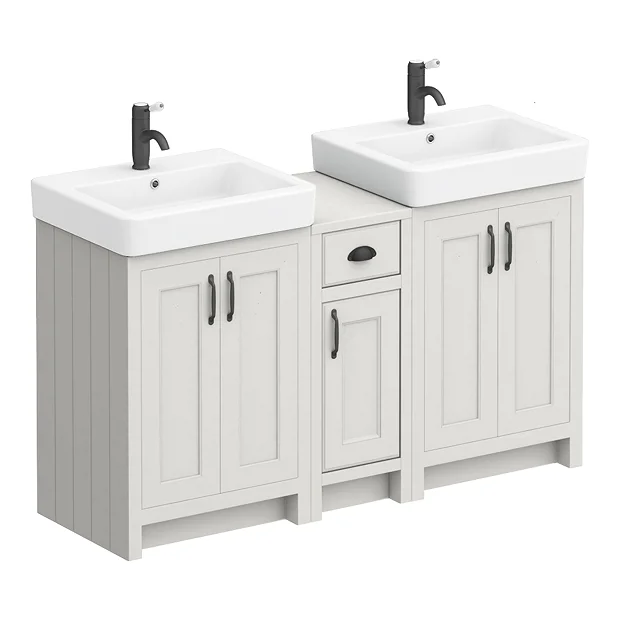 Chatsworth Traditional Grey Double Basin Vanity + Cupboard Combination Unit with Matt Black Handles