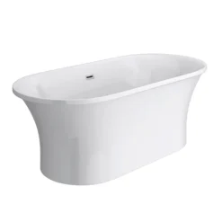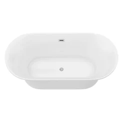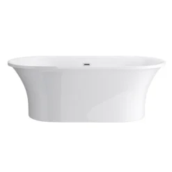This elegant modern double ended roll top free-standing bath is part of our our bath collection containing some of the most desirable bath designs available today. Features a stylish thin edge with a integrated chrome finish overflow and click clack waste. If you want to make a statement with your bath design, then choose from our luxury collection. Made with quality white gloss smooth acrylic. This bath has been designed for use with wall mounted or floor mounted free standing taps.