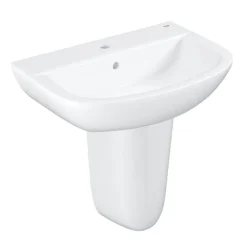 The Cube Ceramic range of basin designs has been created to suit your personal style and routine. This 450mm wall hung basin is ideal for creating a modern bathroom scheme. It features a single tap hole and built in overflow. Thanks to GROHE PureGuard coating, the ceramic surface locks out dirt and inhibits bacteria. Manufactured from high grade fine fire clay and finished in Alpine White, it’s durable surface will look good for years to come.Â