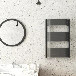 The Milan bow-fronted anthracite designer vertical heated towel rail features an innovative modern design, manufactured from durable steel with a quality anthracite finish, this stylish bow-fronted flat panel towel rail provides superb heat output which will gently warm towels and your bathroom or cloakroom.