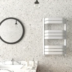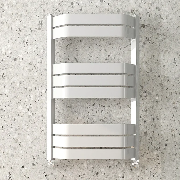 The Milan bow-fronted white designer vertical heated towel rail features an innovative modern design, manufactured from durable steel with a quality white finish, this stylish bow-fronted flat panel towel rail provides superb heat output which will gently warm towels and your bathroom or cloakroom.