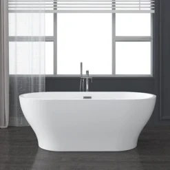 The Monza Double Ended Free Standing Back to Wall Bath offers a clever solution for compact bathrooms. One side of this 1700mm-long D-shaped bath sits flush against the wall, while its sleek curved edge saves space. The modern freestanding bath is made from durable acrylic in a white gloss finish to resist scratching and warping and retain heat, keeping your water warmer for longer. This acrylic bath is designed to pair with a freestanding tap.