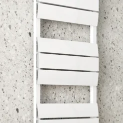 Make a statement with the ultra-modern white Monza aluminium designer towel rail, featuring a stunning minimalist design. This high performance energy efficient aluminium heated towel rail is an excellent thermal conductor and has the ability to heat up much quicker than steel and cast iron radiators. It’s lightweight design makes this stylish towel rail easier to transport and install.