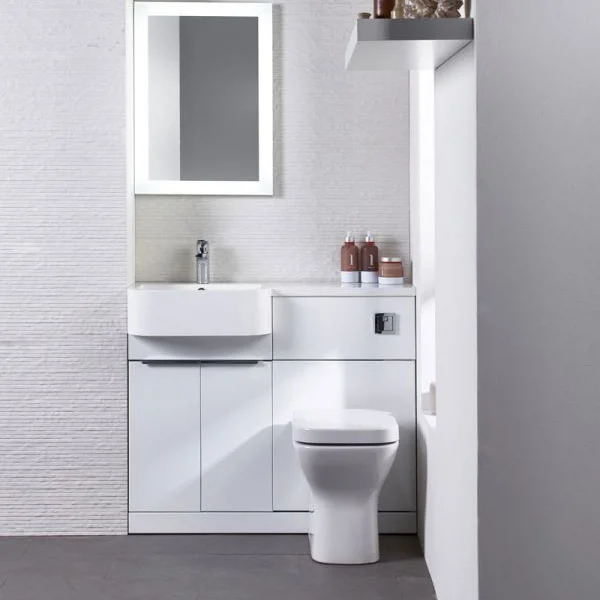 (1) Match 1000mm Semi-Countertop & Back to Wall Unit (Right Hand) – Gloss White – MATRW